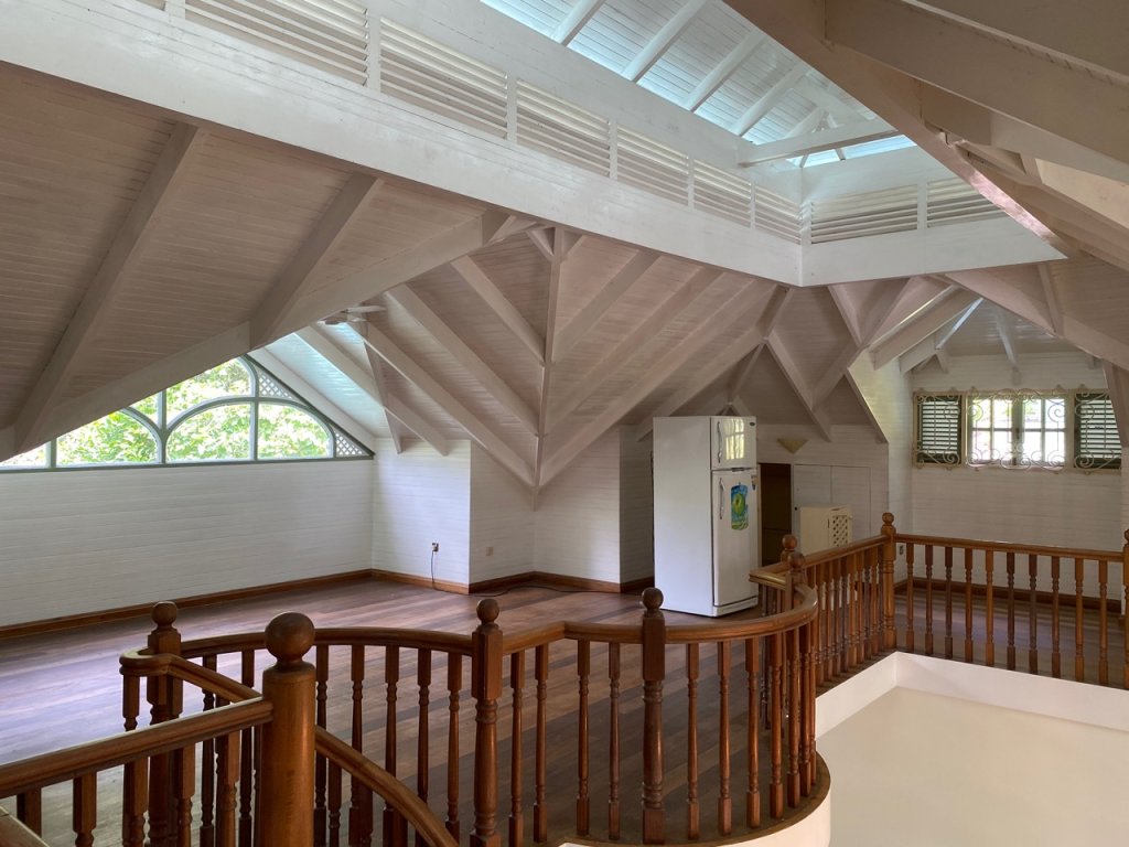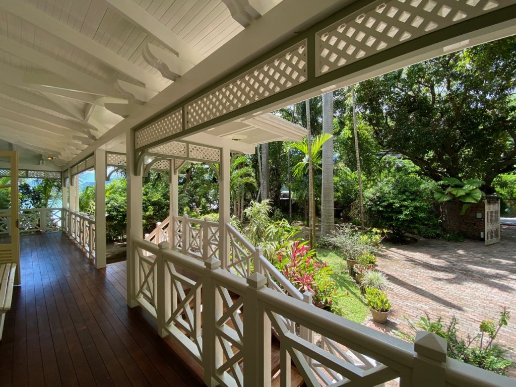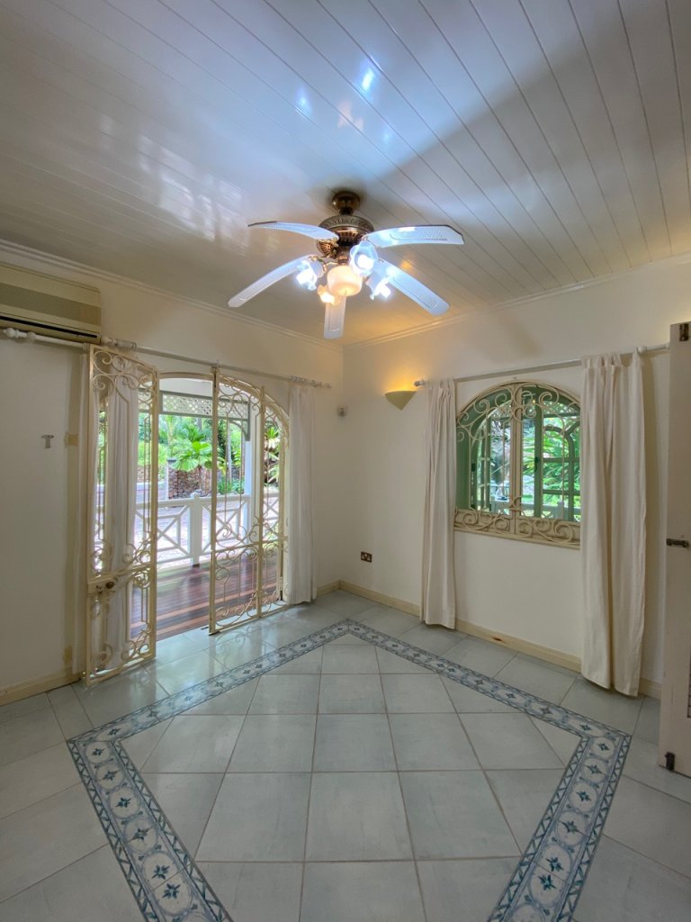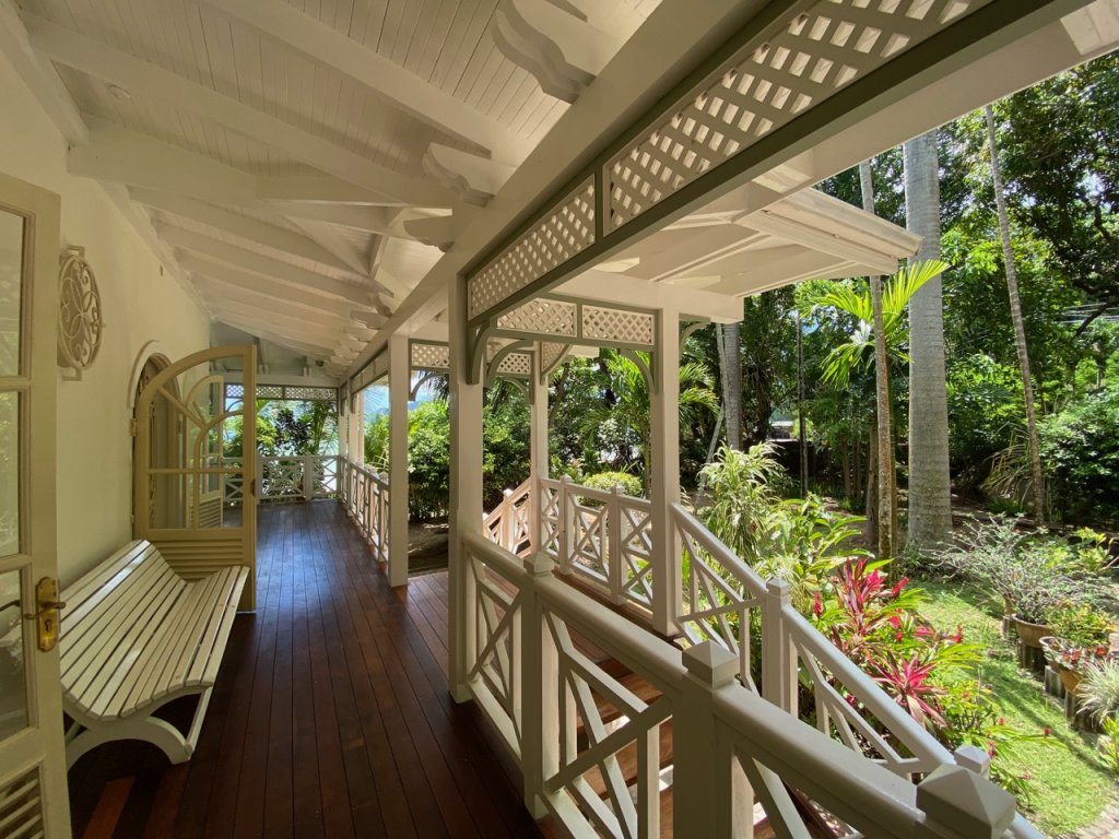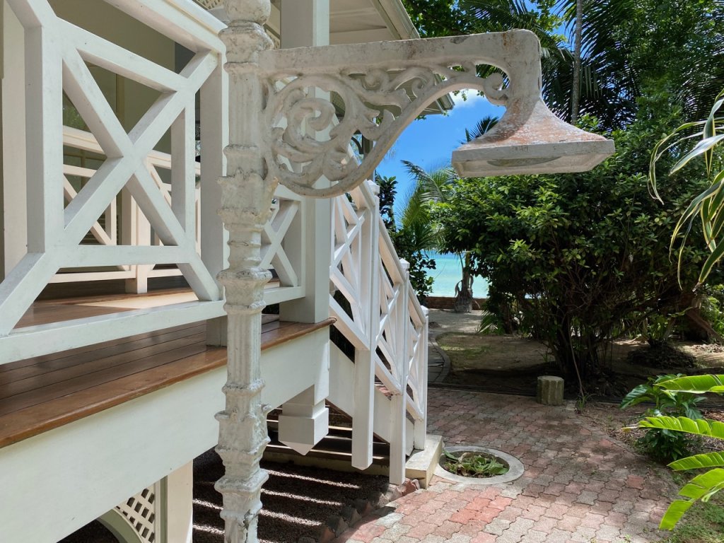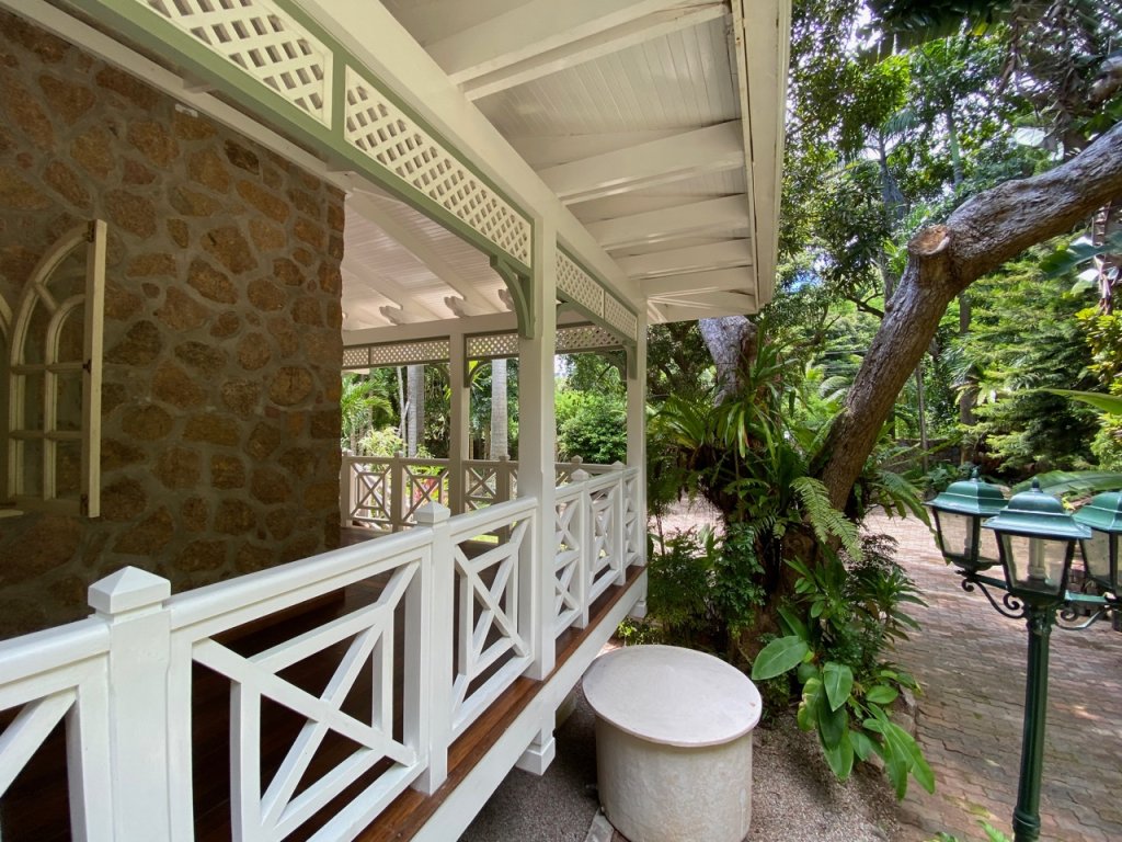 · Charming Architecturally Significant Villa – with two airconditioned bedrooms and a one bedroom apartment with separate entrance all with ensuite bathrooms, vast Loft and numerous verandas designed by a recognized architectural firm, constructed to a very high standard of workmanship with bespoke imported and local materials and fittings; well maintained. Separate Creole style timber-framed butler’s chalet at entrance, with a bedroom, bathroom and kitchenette. High ceilings; large volume storage water tank for dry season; traditional creole style roof structure provides maximum natural ventilation.