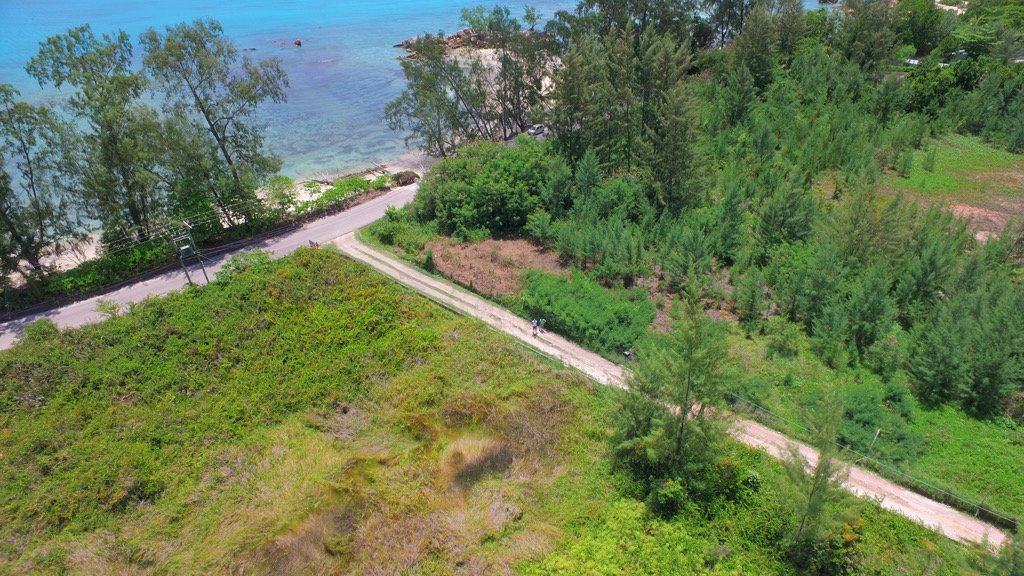 Pure white sand beach front across the road
