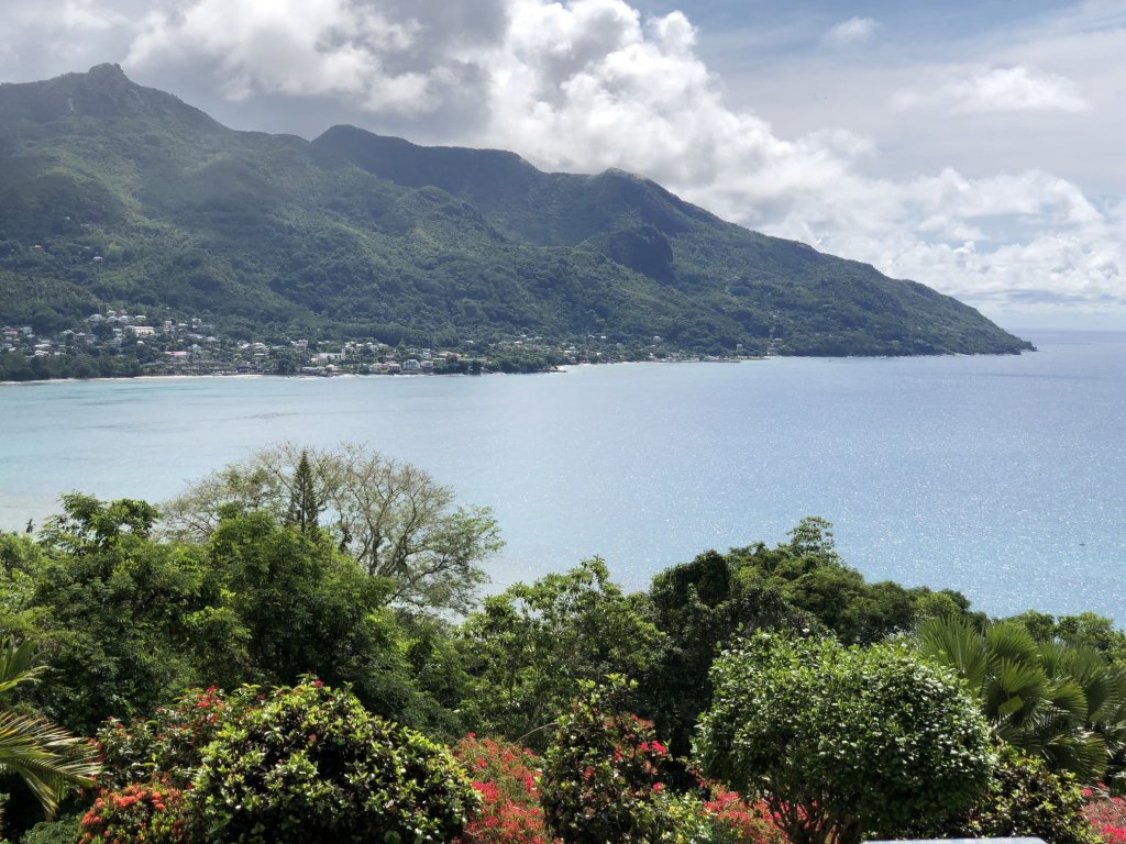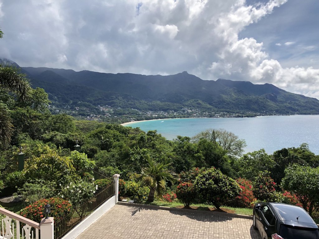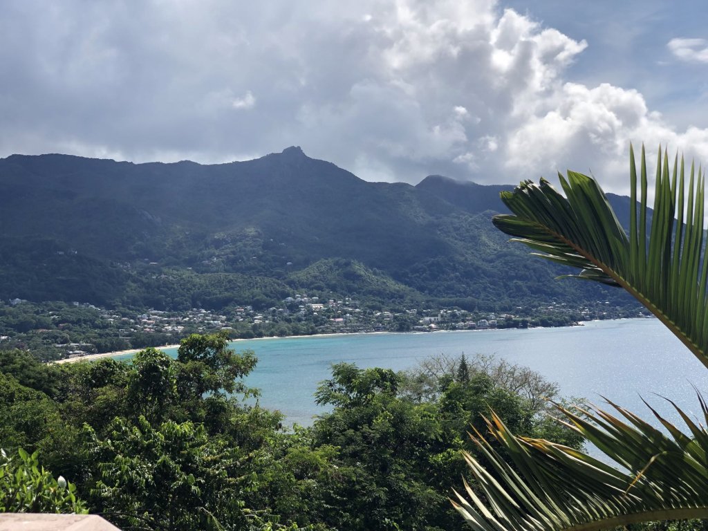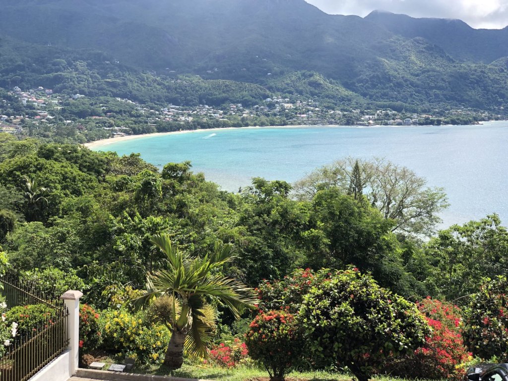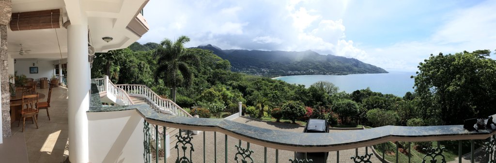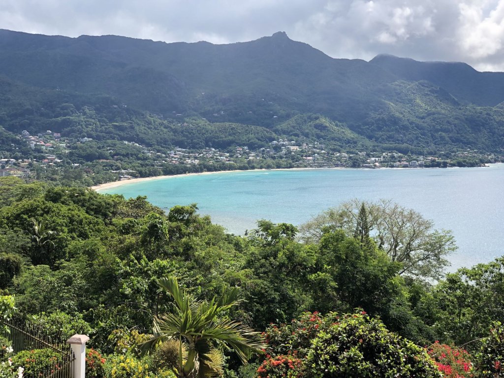 Panoramic ocean and beach views of Beau Vallon bay