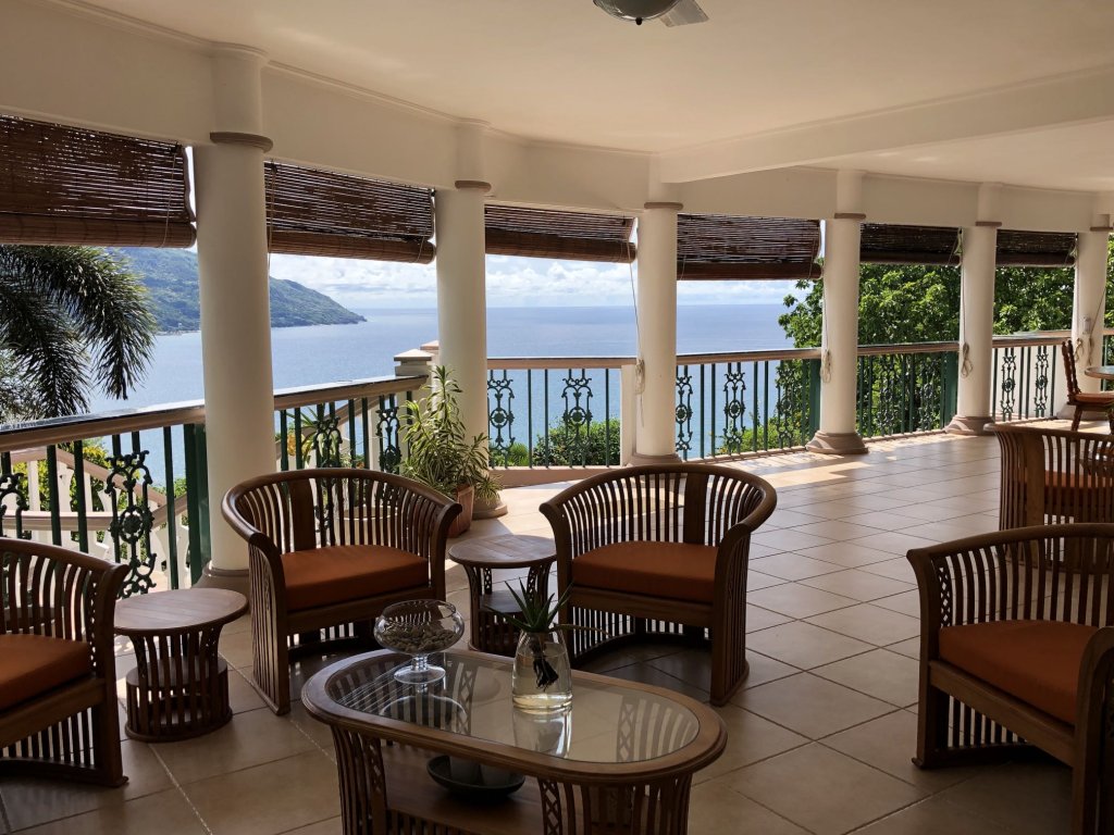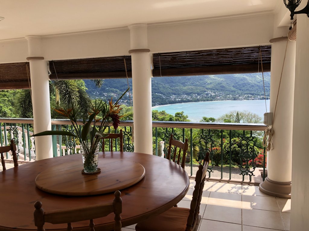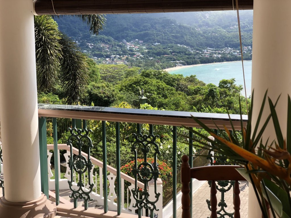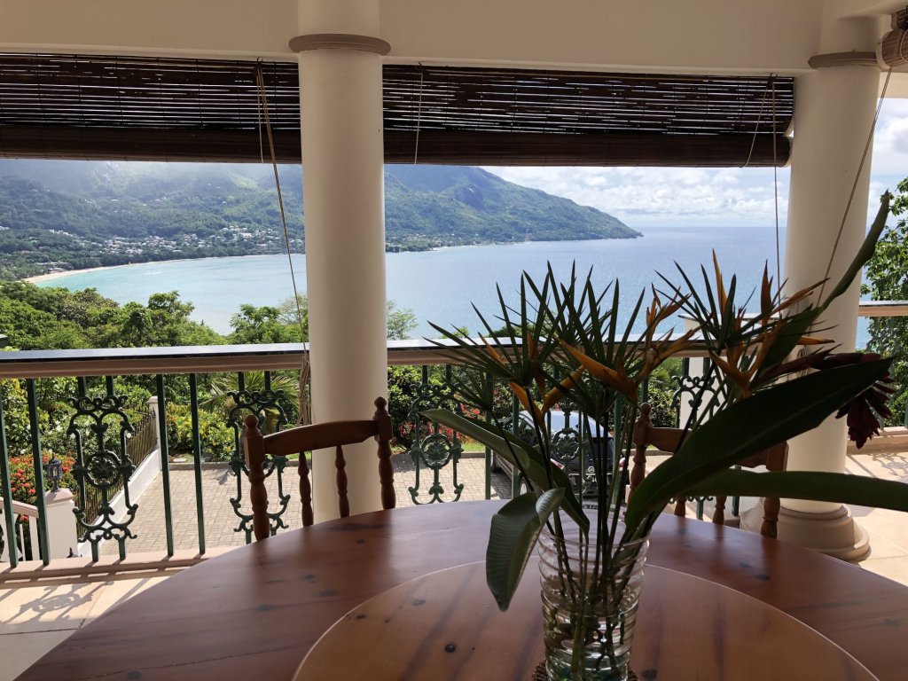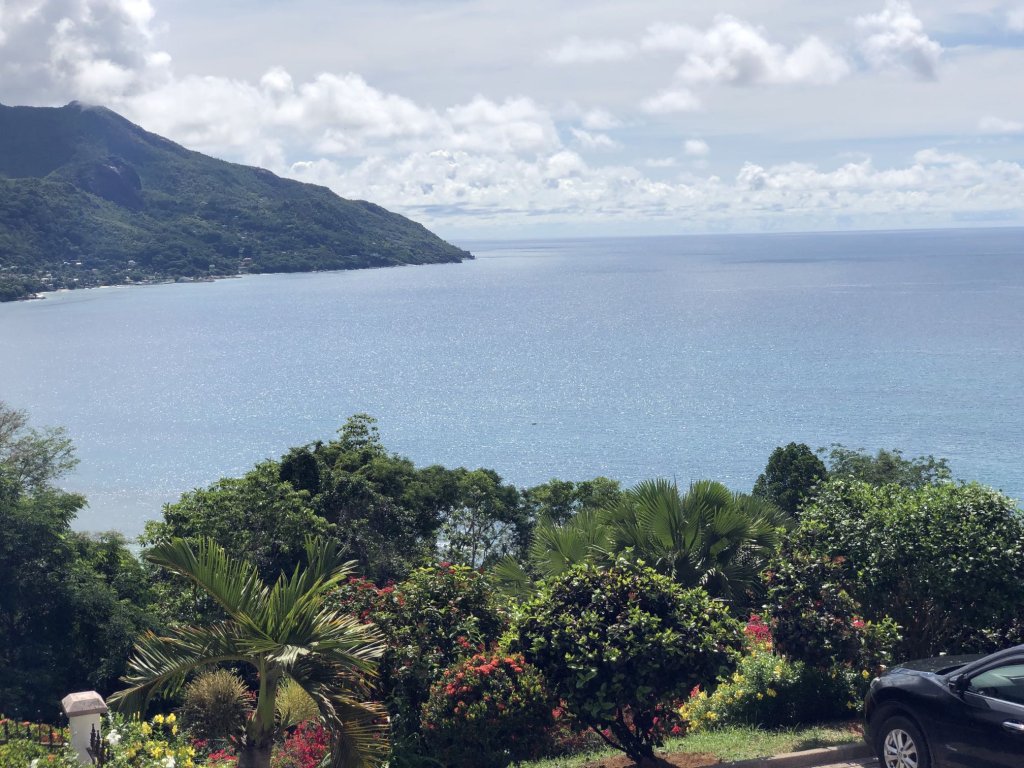 Panoramic ocean and beach views of Beau Vallon bay
