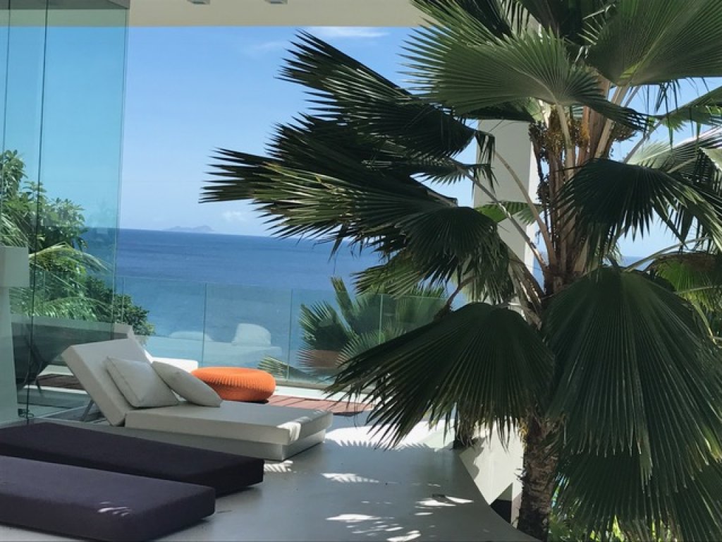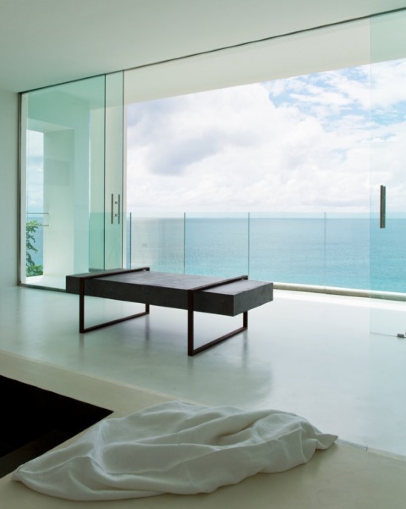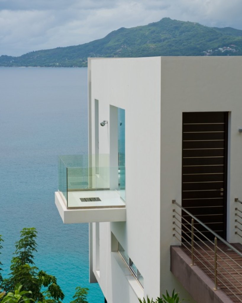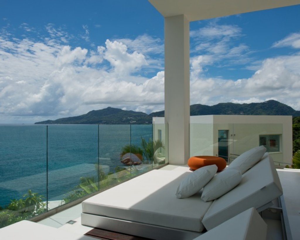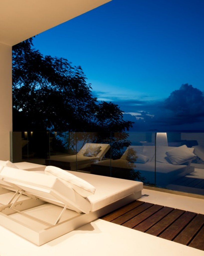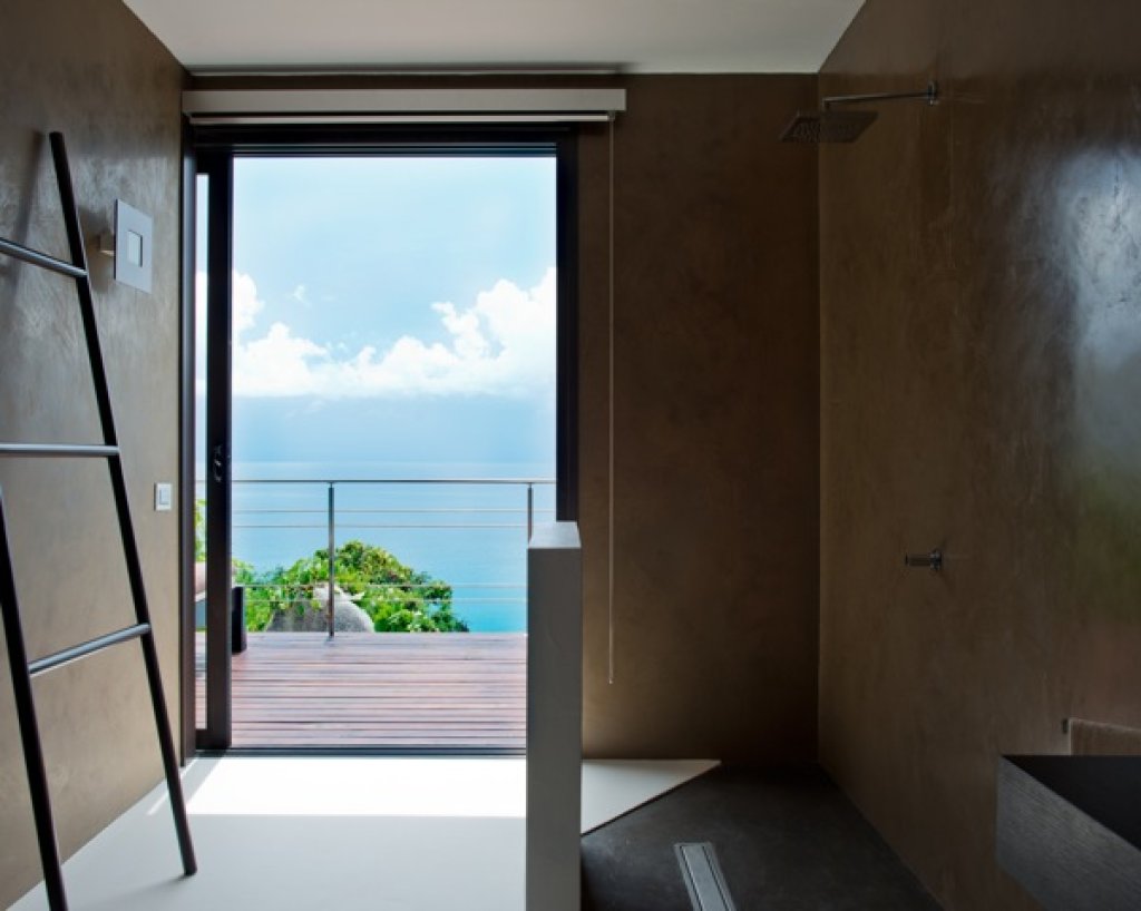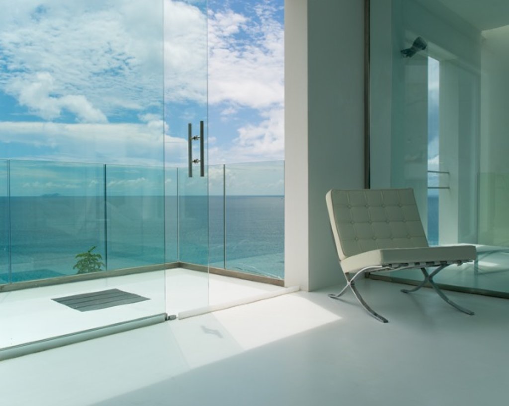 Master bedroom: 2 floors of 80 sq m each with a King size bed in the middle of the upper floor with a 7 meter solid glass window (without frame) with a wide balcony facing the ocean and some of the inner islands.