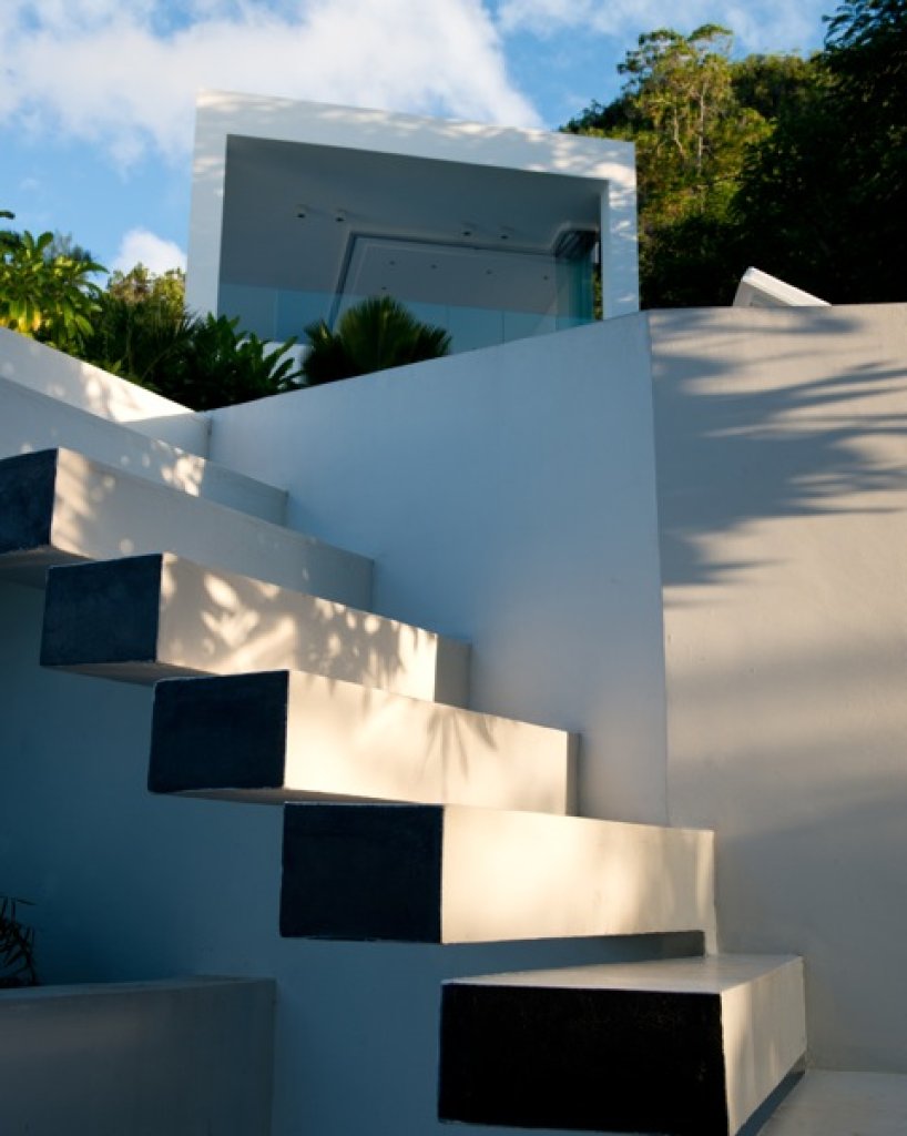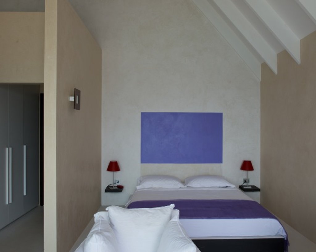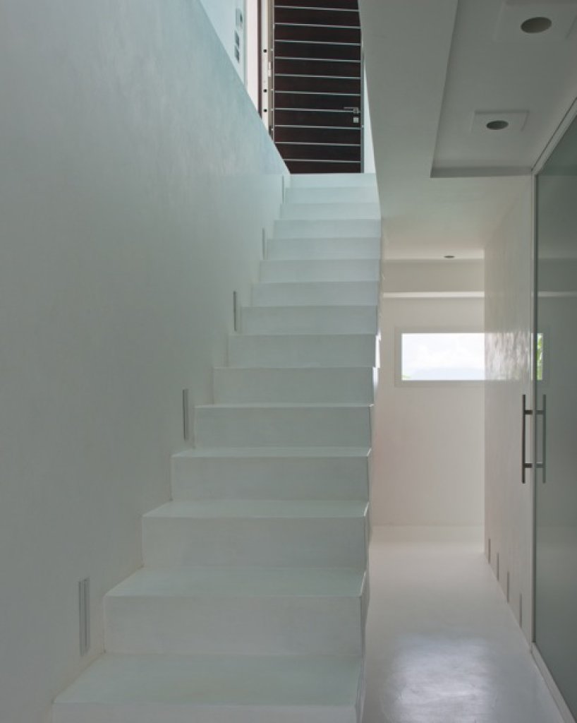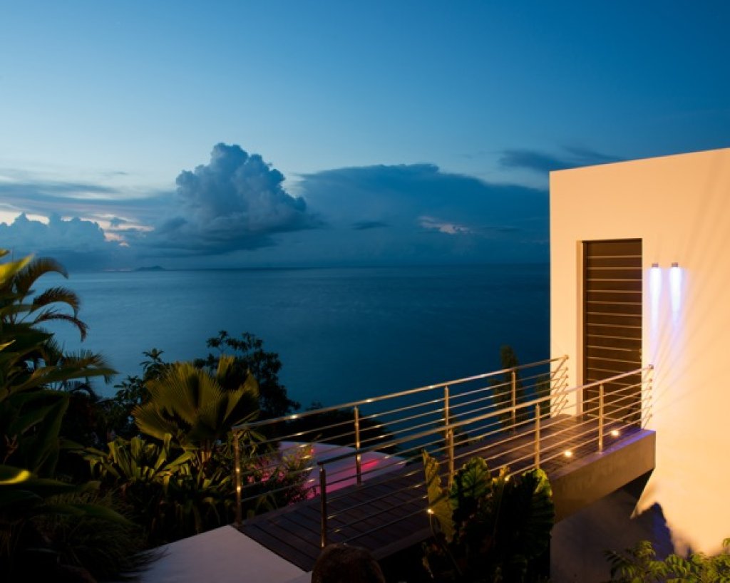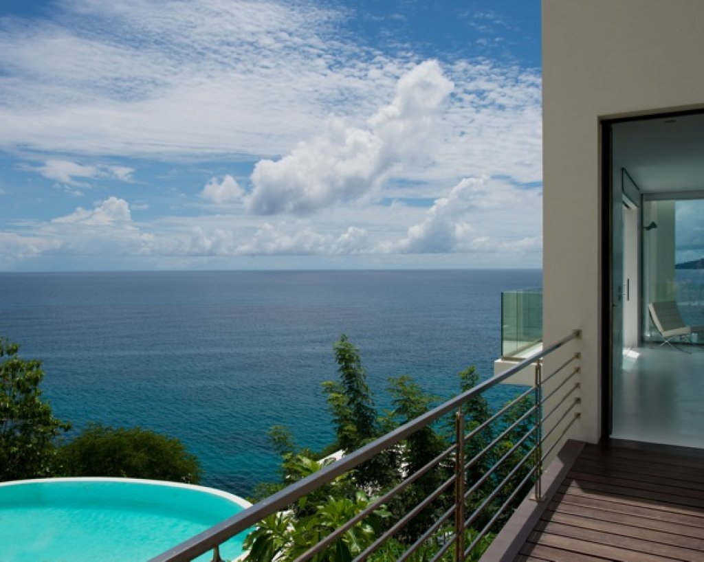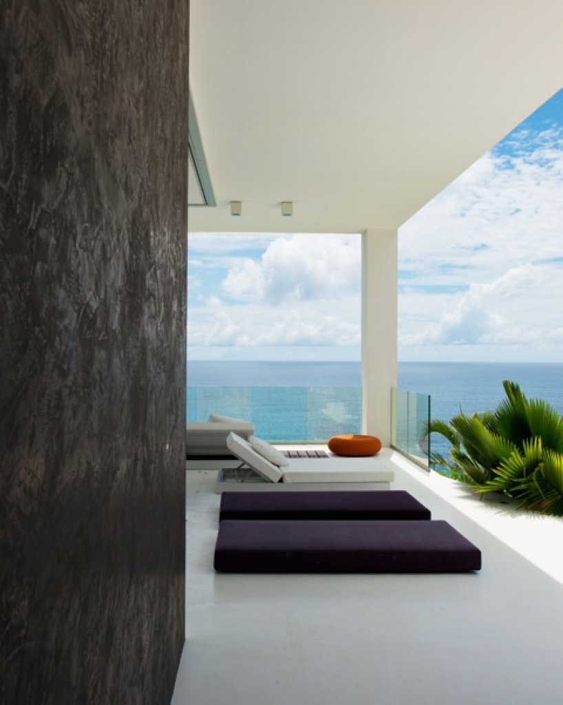 Master bedroom: 2 floors of 80 sq m each with a King size bed in the middle of the upper floor with a 7 meter solid glass window (without frame) with a wide balcony facing the ocean and some of the inner islands.