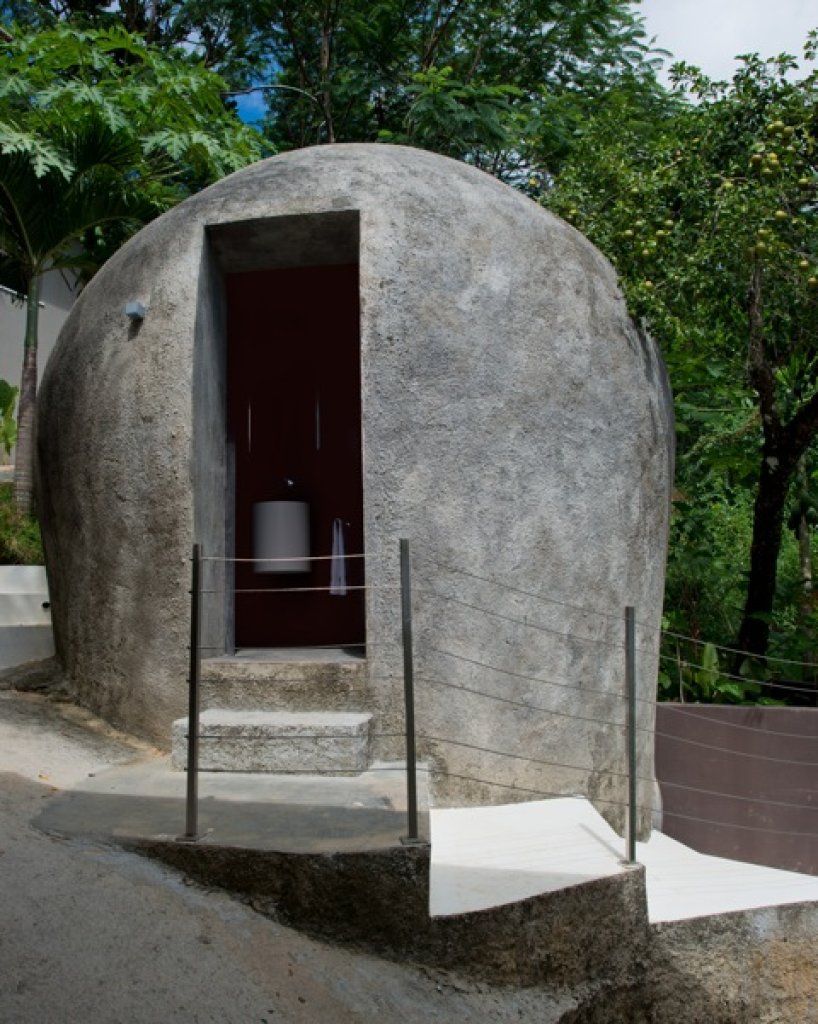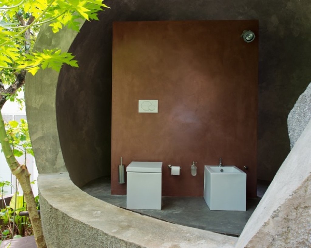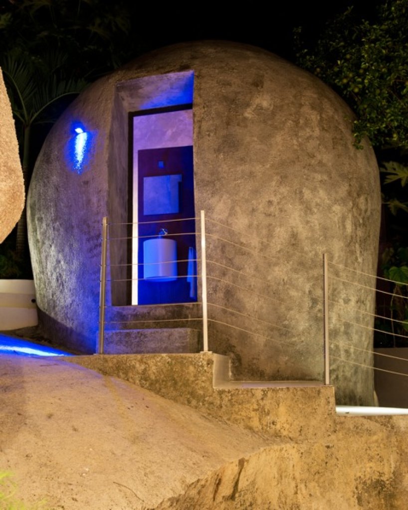 EGG toilet: a big artificial stone where inside you can find a guest toilet and basin with an amazing and unexpected open view of the nature around you (unique).